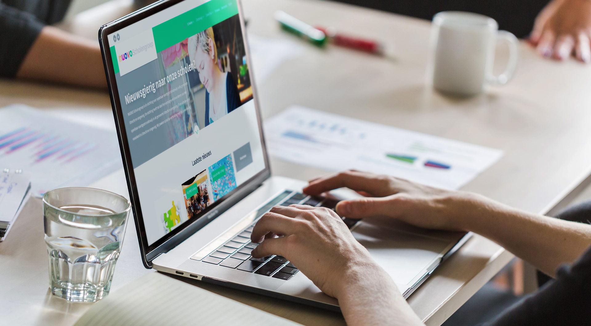 Het bestuur van NUOVO hecht veel waarde aan een eenduidige uitstraling van de scholen. Samen met onze partner Plate hebben we een moedertemplate ontworpen waar elke school zijn eigen identiteit in kwijt kan, maar waarbij uniformiteit van de scholengroep behouden blijft.